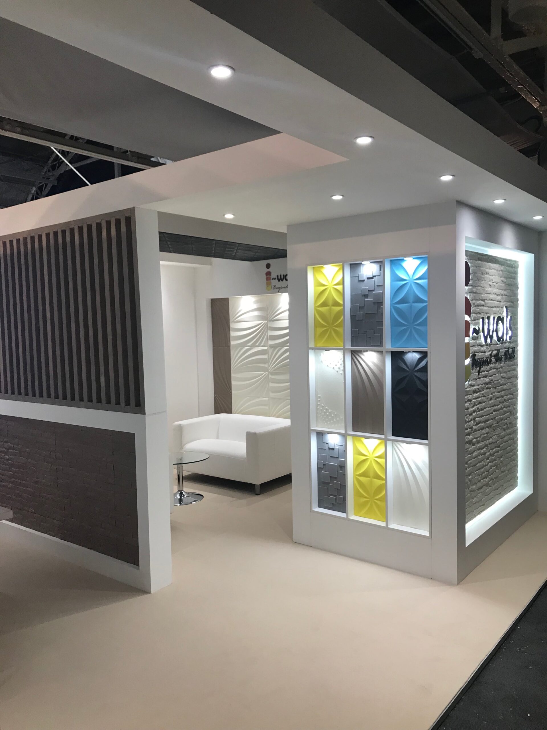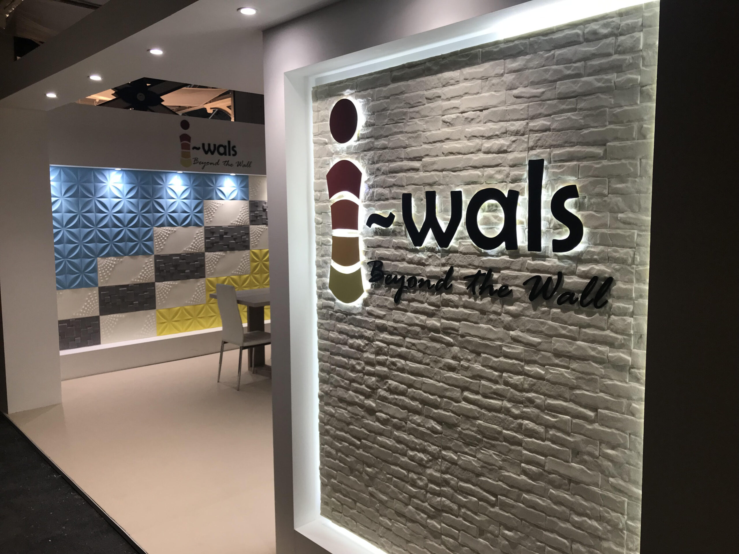 The brief was to create a clean, premium space where i-wals could showcase multiple surface finishes with lighting that reveals texture, invites close up viewing, and supports comfortable conversations.