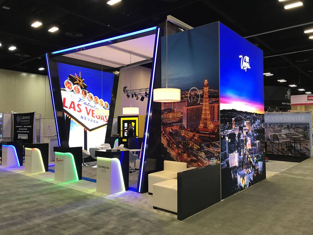 We worked with Las Vegas Tourism for Expo! Expo! 2023, delivering a bold, high impact exhibition stand at the Kay Bailey Hutchison Convention Center in Dallas. The stand was designed to capture the energy of Las Vegas while standing out clearly within a busy international exhibition environment.