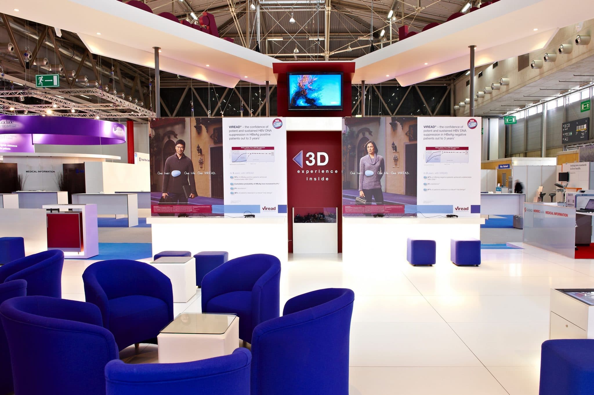 We worked with Viread for EASL 2019, delivering a striking and highly functional exhibition stand at the Reed Messe Wien Exhibition and Congress Center in Vienna. The stand was designed to support scientific engagement while clearly communicating key clinical messages within a busy medical conference environment.