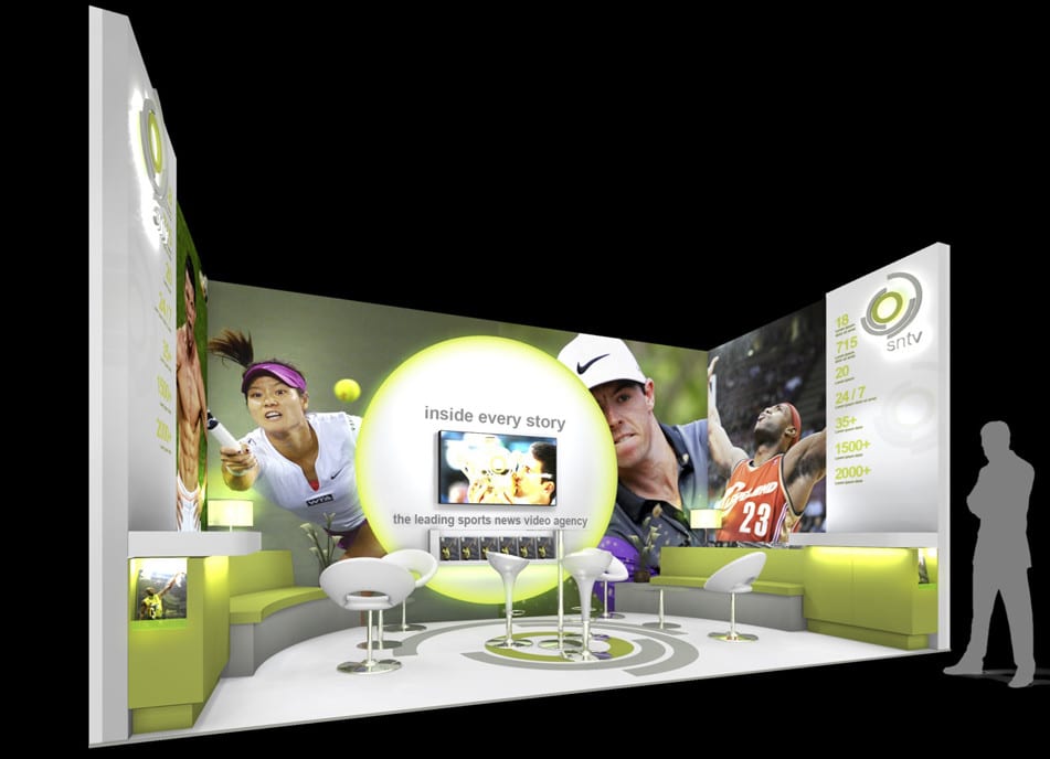 The stand design centred on bold, immersive sports imagery combined with a distinctive circular feature that framed the main digital display. This created an immediate focal point and reinforced SNTV’s position as a leader in sports video news.